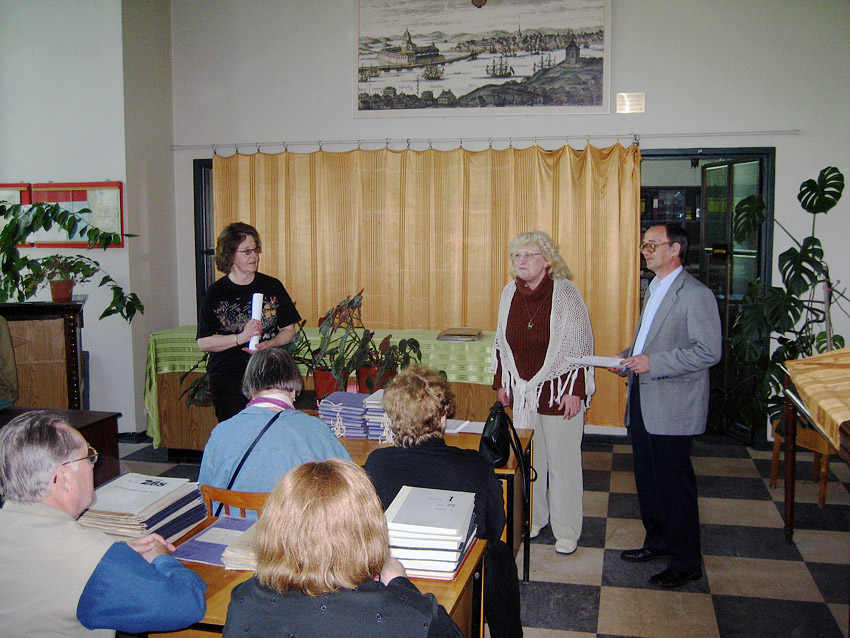 Arkiston johtaja Viktor Pantelejev, tulkki Tatjana Shumilina ja Leena Repo opastivat meidät talon tavoille