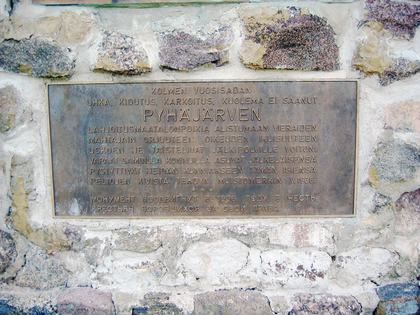 Pyhäjärven lahjoitusmaatalonpoikien muistolaatta